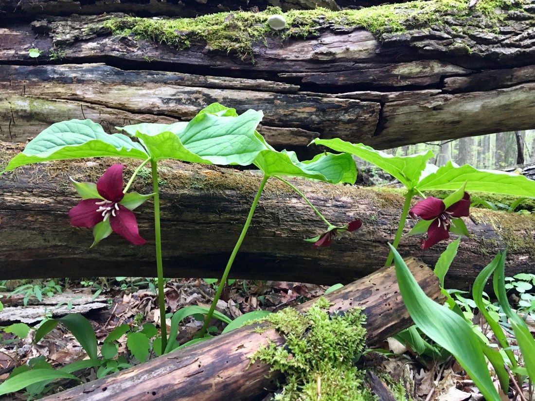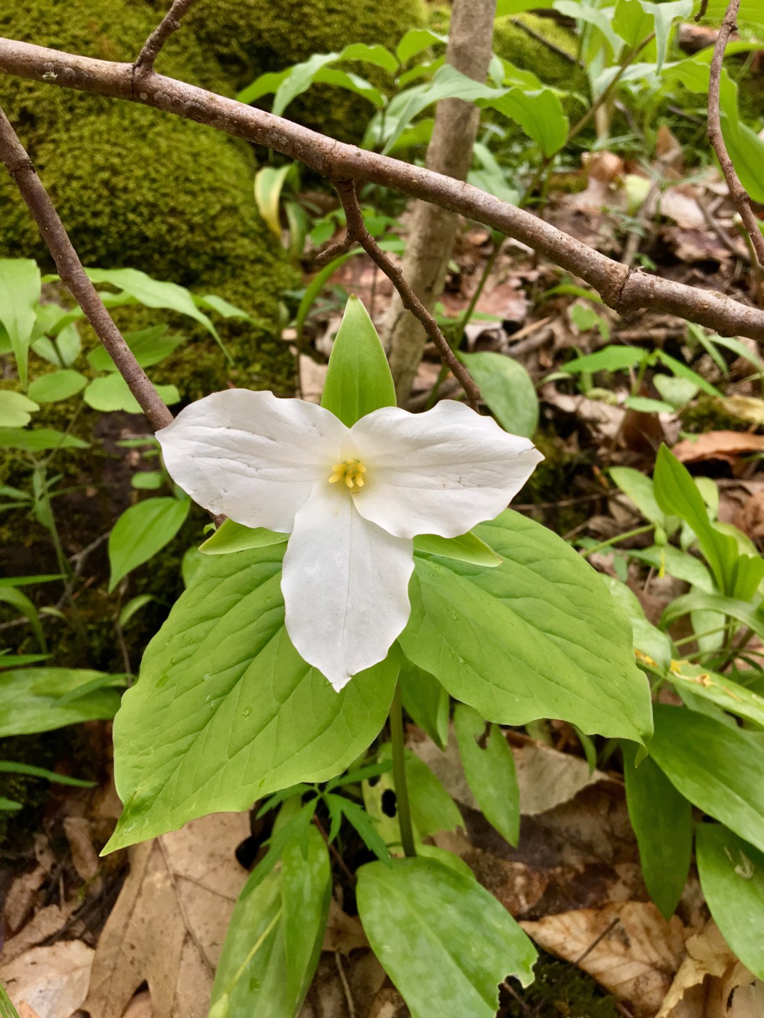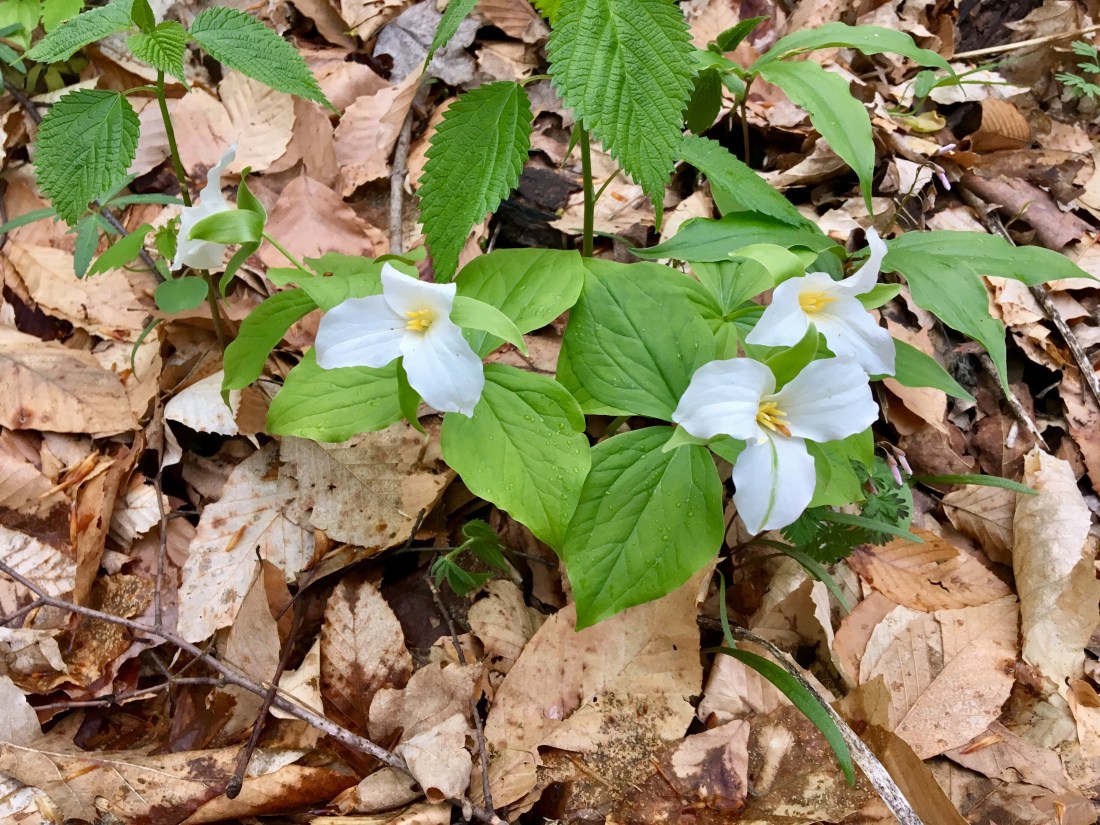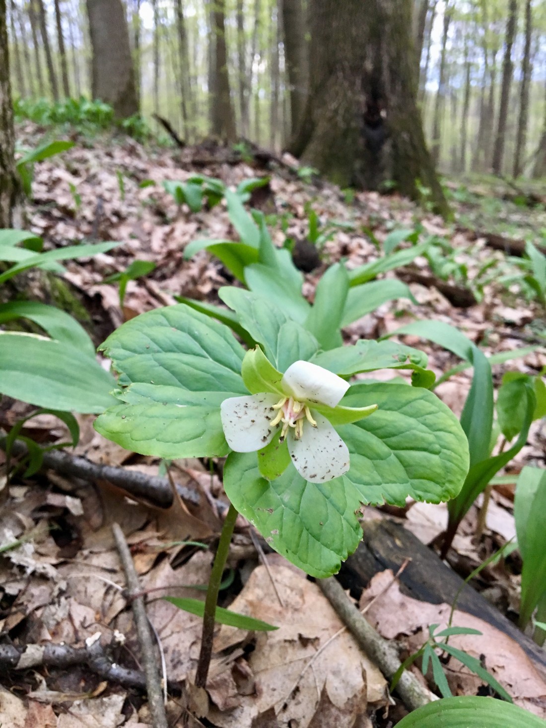 Not sure what this is but it shared the forest floor with a big patch of huge white Trilliums