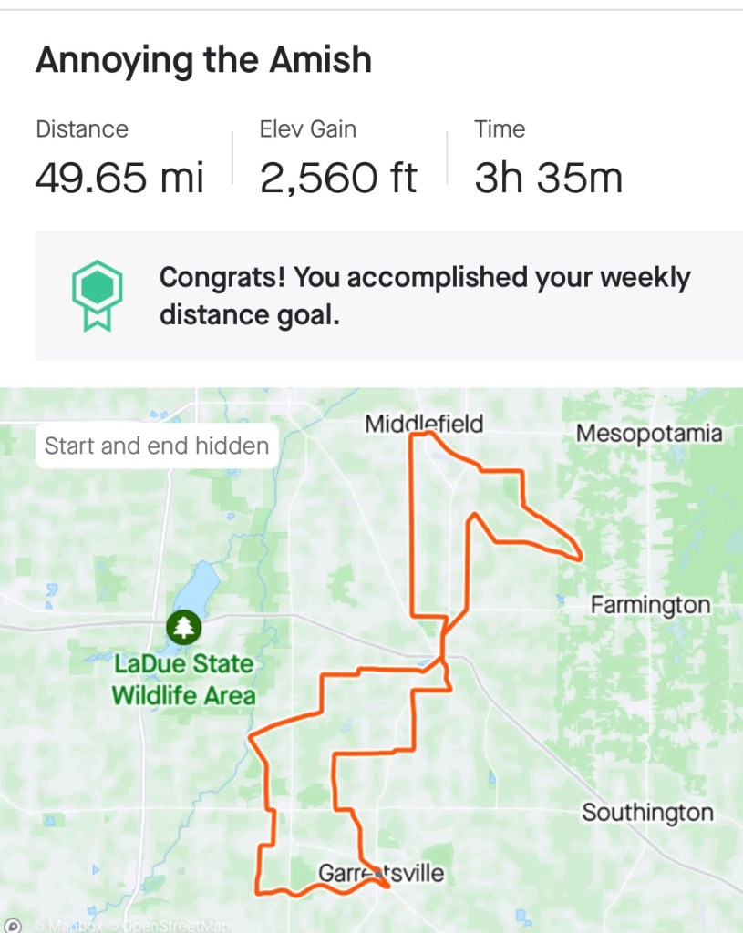 Conclusion: no matter how they promote it as scenic tour of the gravel roads of Geauga County….it’s a road ride.