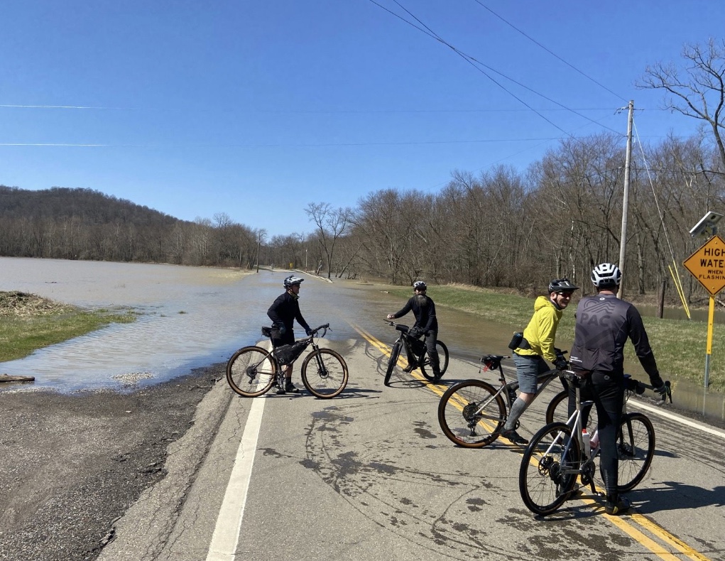 We thought we had avoided the Killbuck Creek flooding, but near mile 35, things got moist.