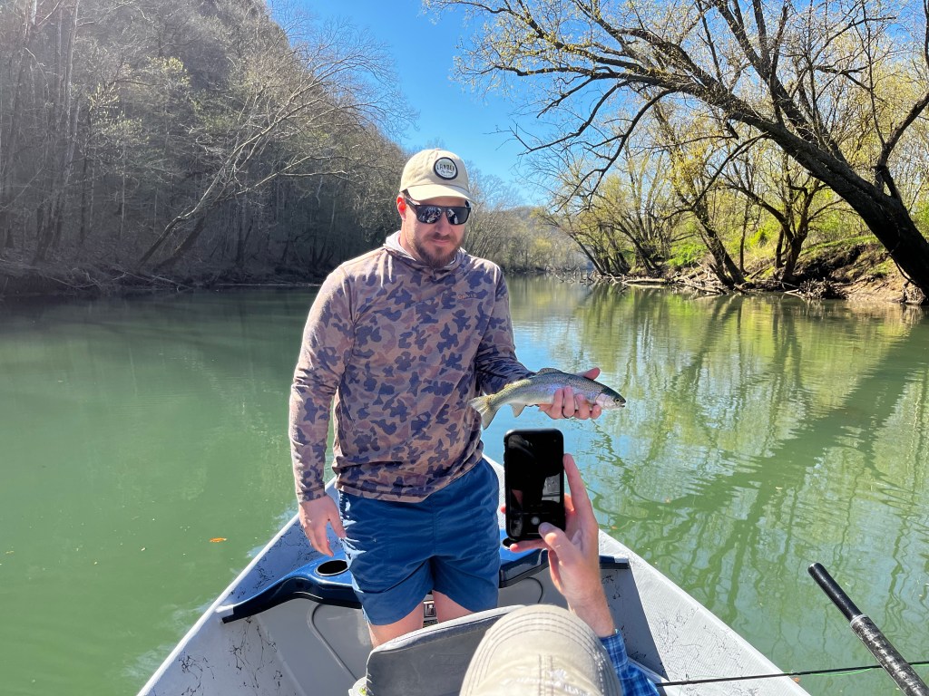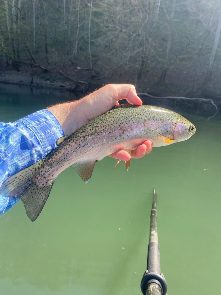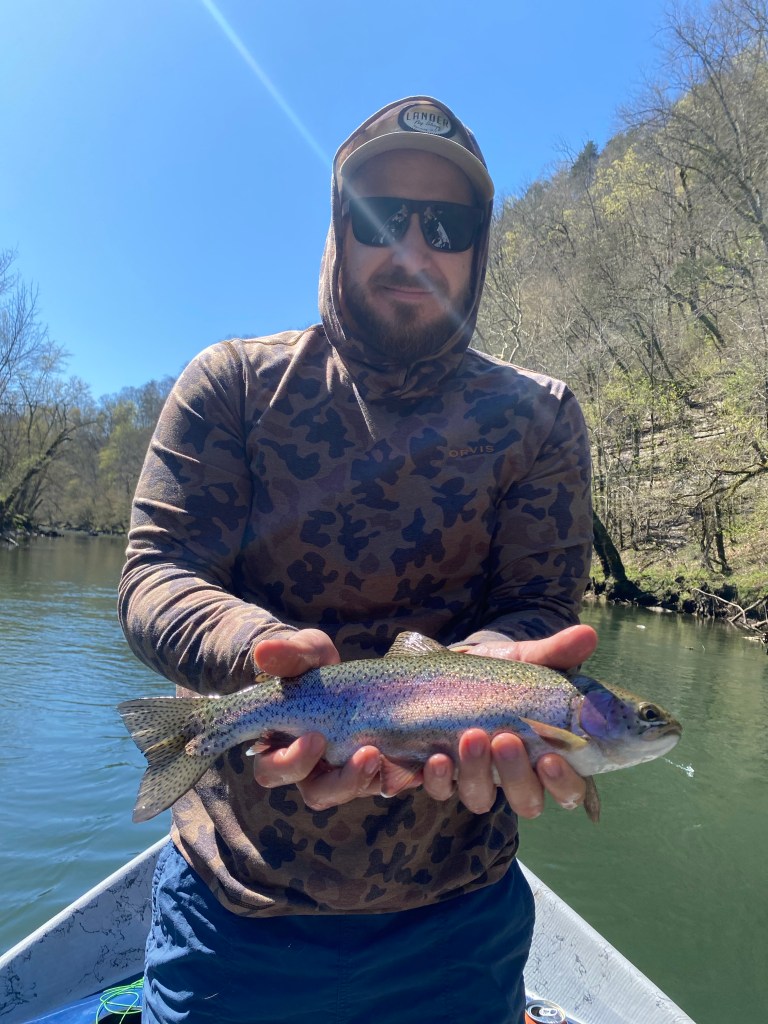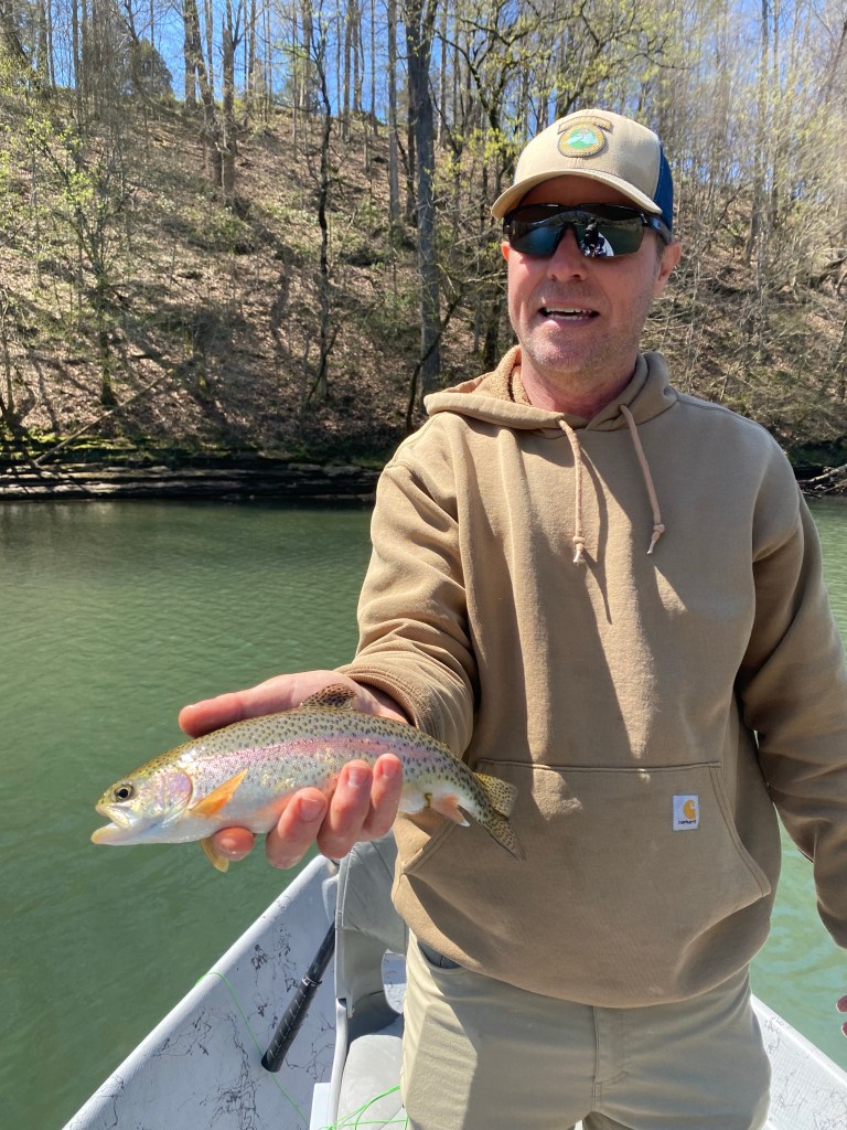 A couple of weeks ago, I headed south to go fishing with my son, Chris. Dave, our guide from Southeastern Fly Fishing, took us for a float on the Obey River, northwest of Knoxville. This little brownie started off my best day of fishing ever. Last fall, Dave guided us on the Elk River, where we caught at least 30 smaller stocked rainbows. This day was different. Many of the fish we caught were 10+ inches with a few in the 15-20 inch range. And my all-time best, a 21 inch beauty. The fish were fat and colorful, and spring was in full swing in Eastern Tennessee. Dave is a great guide and he was happy to answer all my questions about drift boats. He has a cool podcast, too: