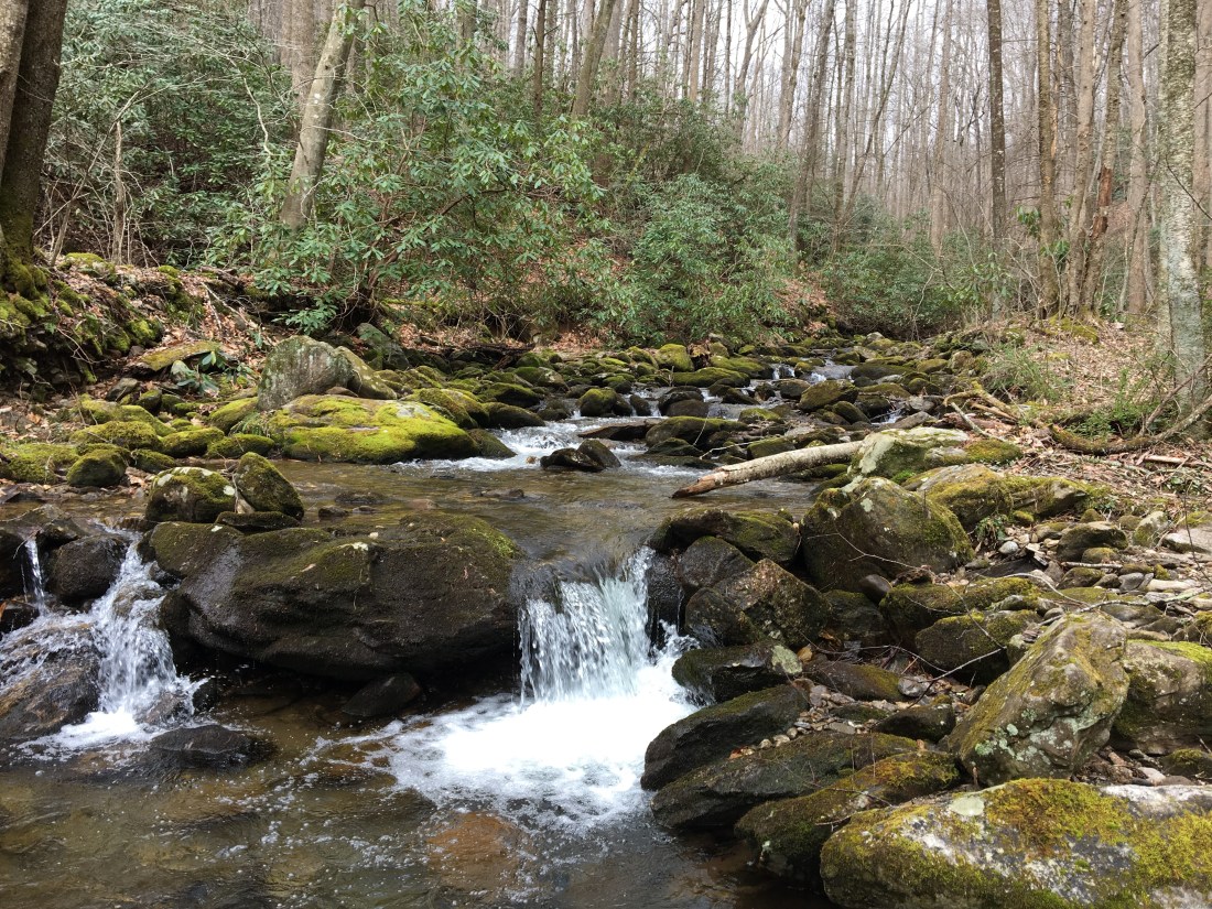 YOU KNOW YOU’RE IN IT: There’s just no substitute for mountain streams and rhododendron. This was the bottom of our Big Creek descent.